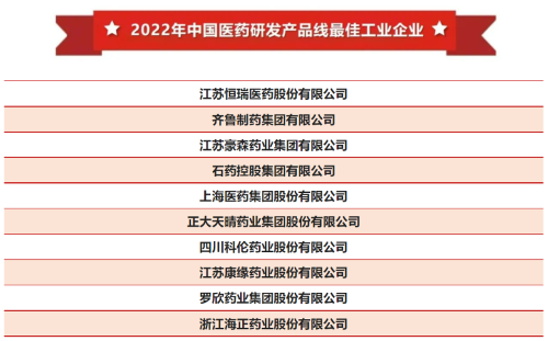 12月18日,2022年(第39届)全国医药工业信息年会在上海开幕,大会发布了备受行业关注的工信部2021年度中国医药工业百强榜单及系列分榜单。k8凯发天生赢家·一触即发医药连续多年上榜中国医药工业百强企业,并以强劲的研发实力和丰富的产品管线再次蝉联“2022年中国医药研发产品线最佳工业企业”榜单首位。